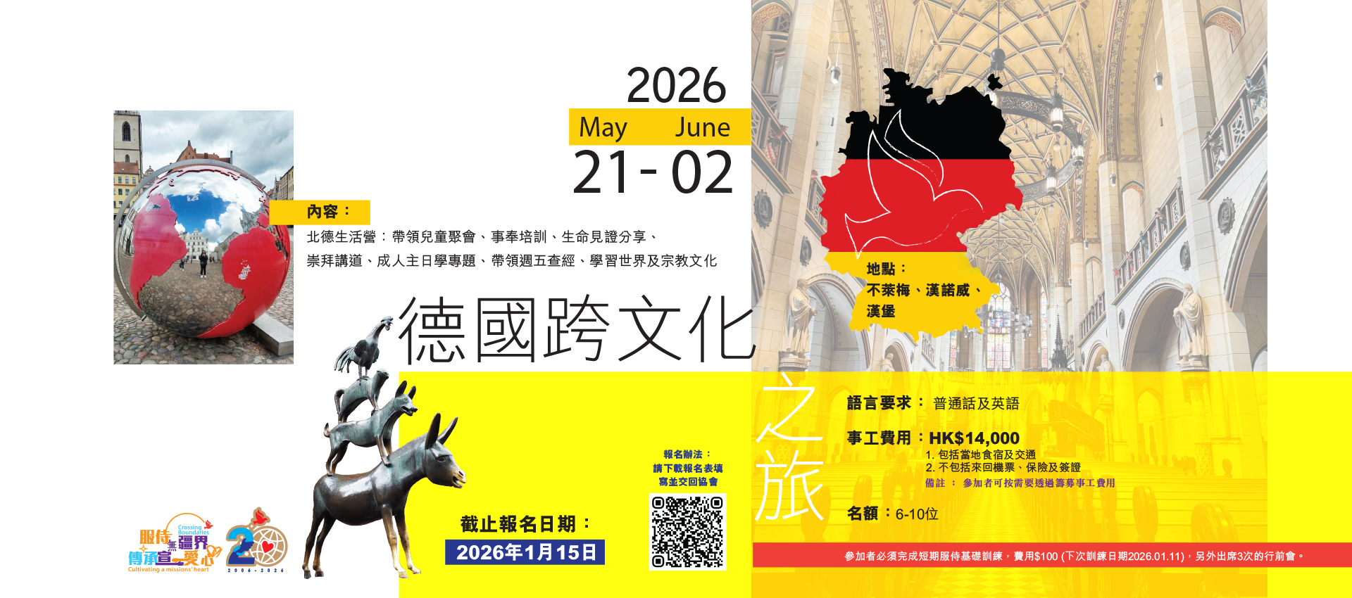 歐盟人口最多的國家、世界第二大移民目的地。約有16萬華人,在5萬名留學生中,中國留學生數量佔據第一 。不萊梅州(Bremen)是德國面積最小的邦州,華人基督徒比例低於1%。在全球化和移民的年代,我們實需要向華人與留學生傳遞福音,也使福音有機會藉著他們帶回中國與身邊的人。